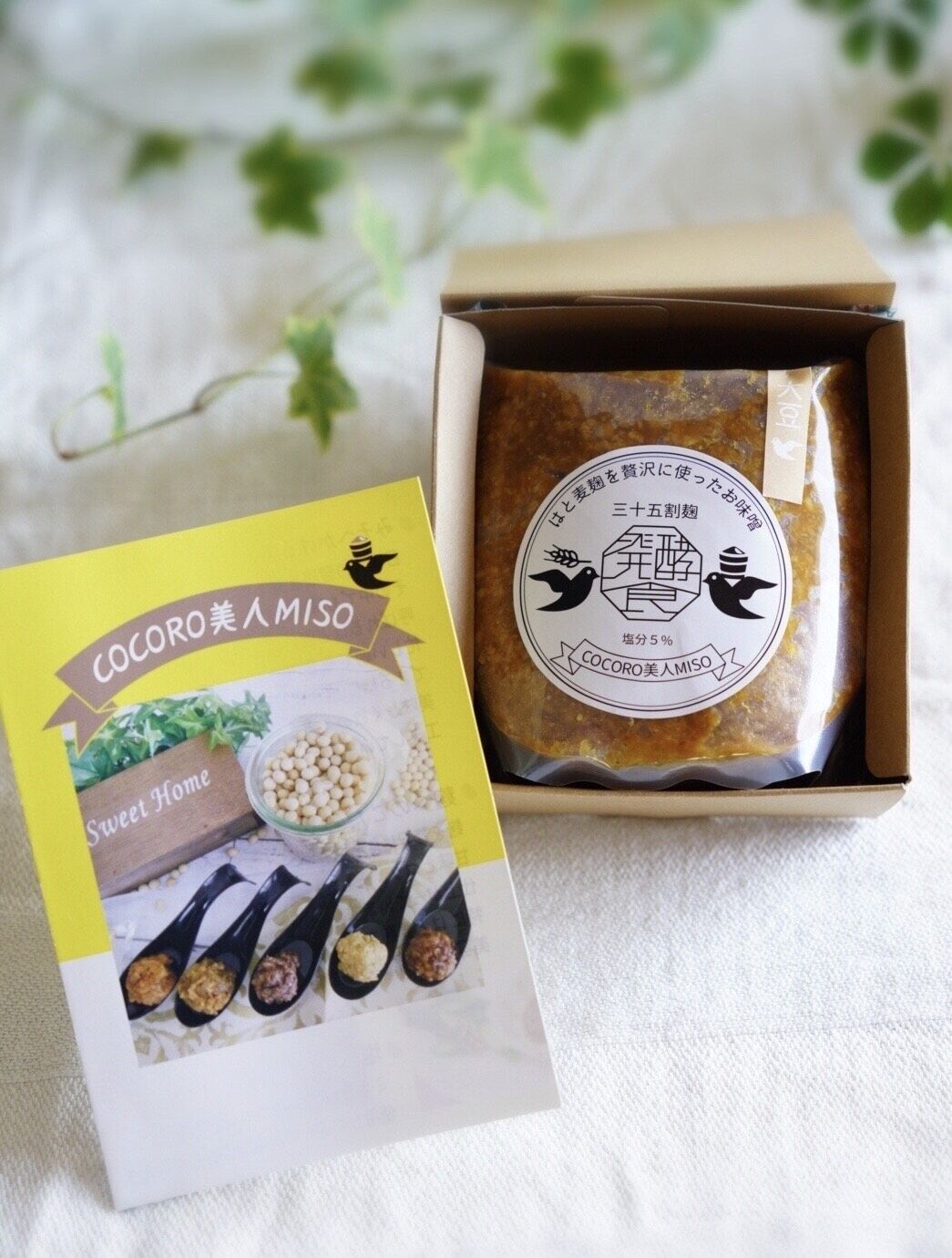 「COCORO美人MISO」は、麹を贅沢に使うことで甘味とコクがあり、特にはと麦麹をたっぷり配合することにより美容効果が期待される薬膳味噌です。お塩はミネラルたっぷりの天然塩を使用して一般のお味噌の約1/2の塩分割合5%にしていますので、減塩中の方にもお勧めです。