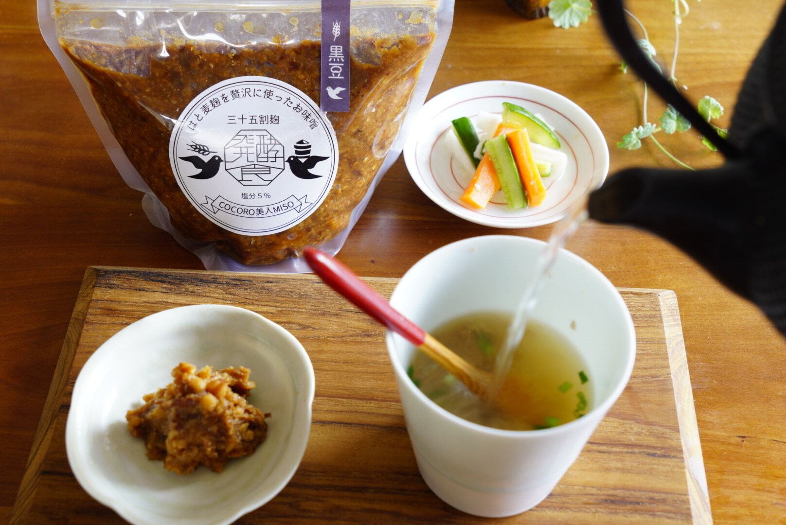 麹を贅沢に使うことにより深い旨味のある薬膳味噌に仕上がっており、出汁が無くてもお湯で溶くだけで美味しく飲めます。
