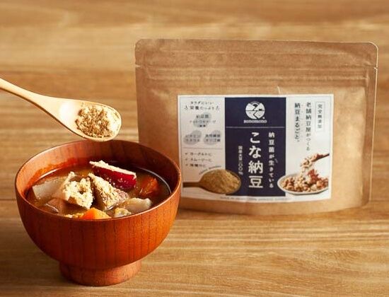 そんなある日テレビでsonomono社の「こな納豆」を知り、粉末で味噌汁にかけてうま味やとろみがアップして美味しくなると、、、